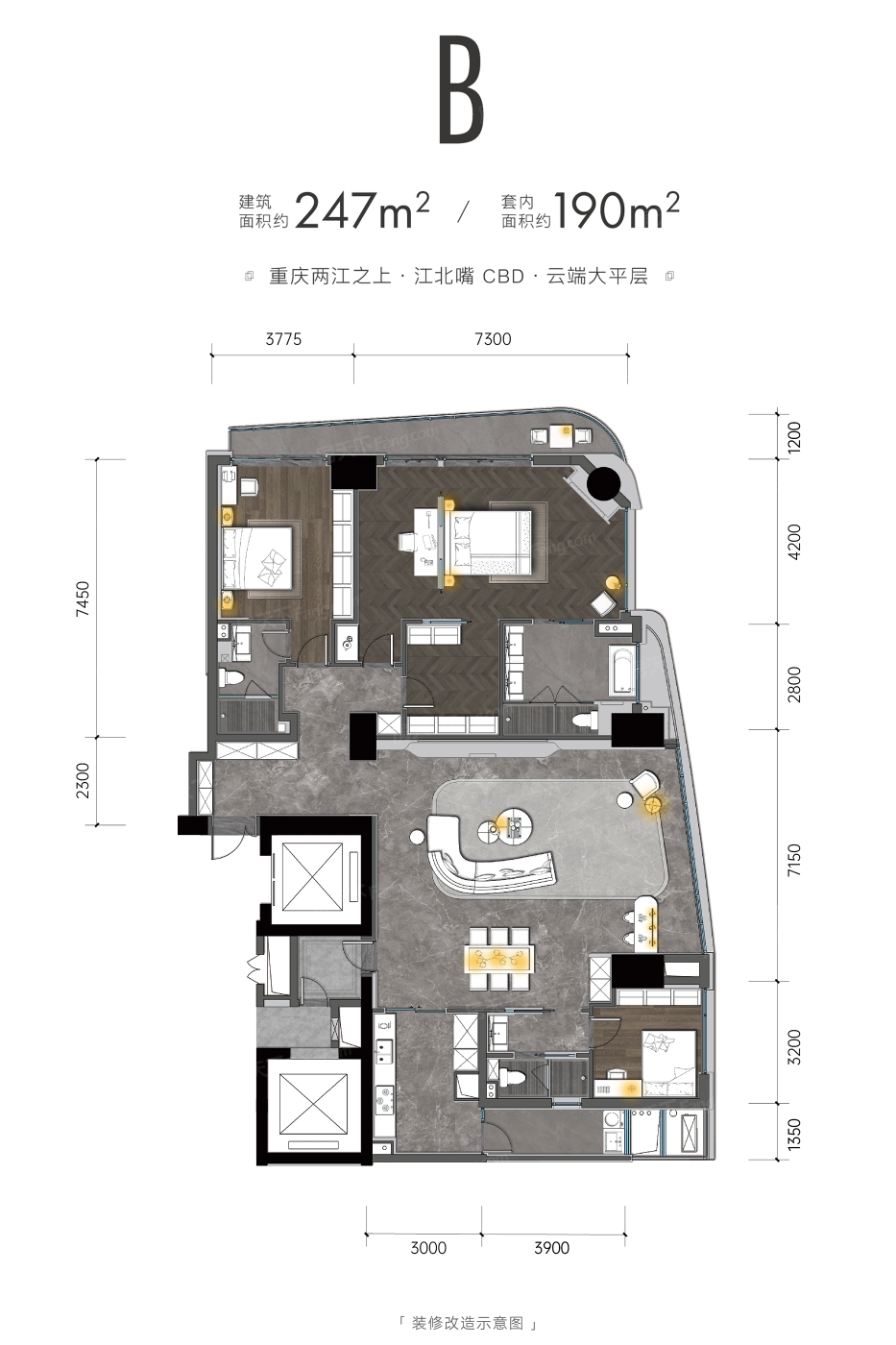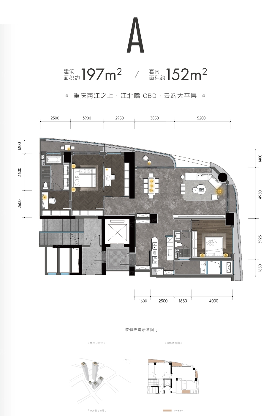 重庆核心区的这个楼盘定位高端,大平层户型设计出色,整体品质处于较高水准。